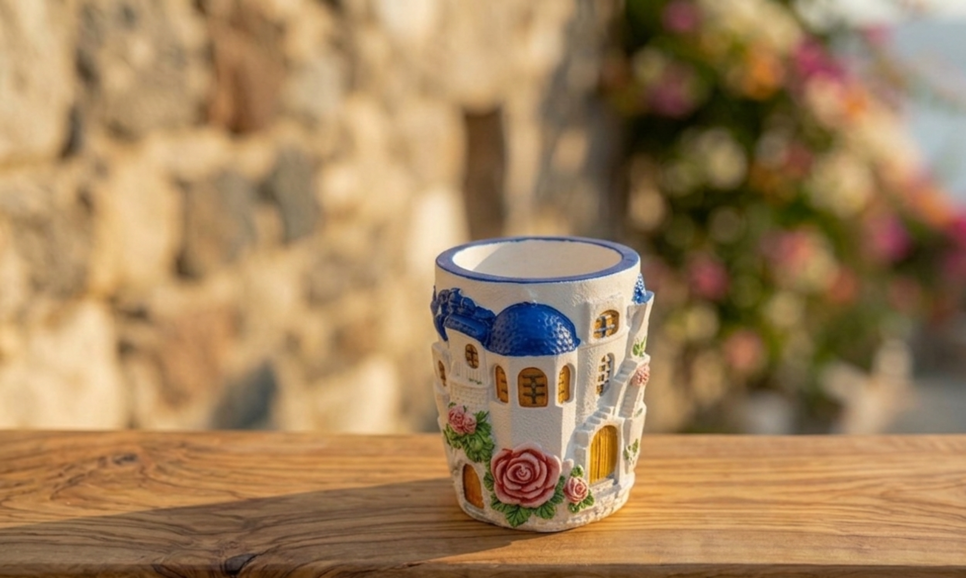 Σε αντίθεση με τα τριαντάφυλλα των κήπων της πόλης, αυτά τα ρόδα είναι μαχητές. Μεγαλώνουν με ελάχιστο νερό, ποτισμένα από την υγρασία της νύχτας και το μελτέμι. Οι νησιώτισσες τα φροντίζουν σαν θησαυρό στις αυλές τους, δίπλα στα γαλάζια παραθυρόφυλλα. Αυτή την αντίθεση —τη στιβαρή πέτρα του Αιγαίου με την απαλότητα ενός τριαντάφυλλου— θελήσαμε να αποτυπωσουμε σε αυτή τη συλλογή. Κάθε σκεύος δεν είναι απλώς ένα αντικείμενο, αλλά ένα μικρό παράθυρο σε μια ανθισμένη γωνιά της Ελλάδας